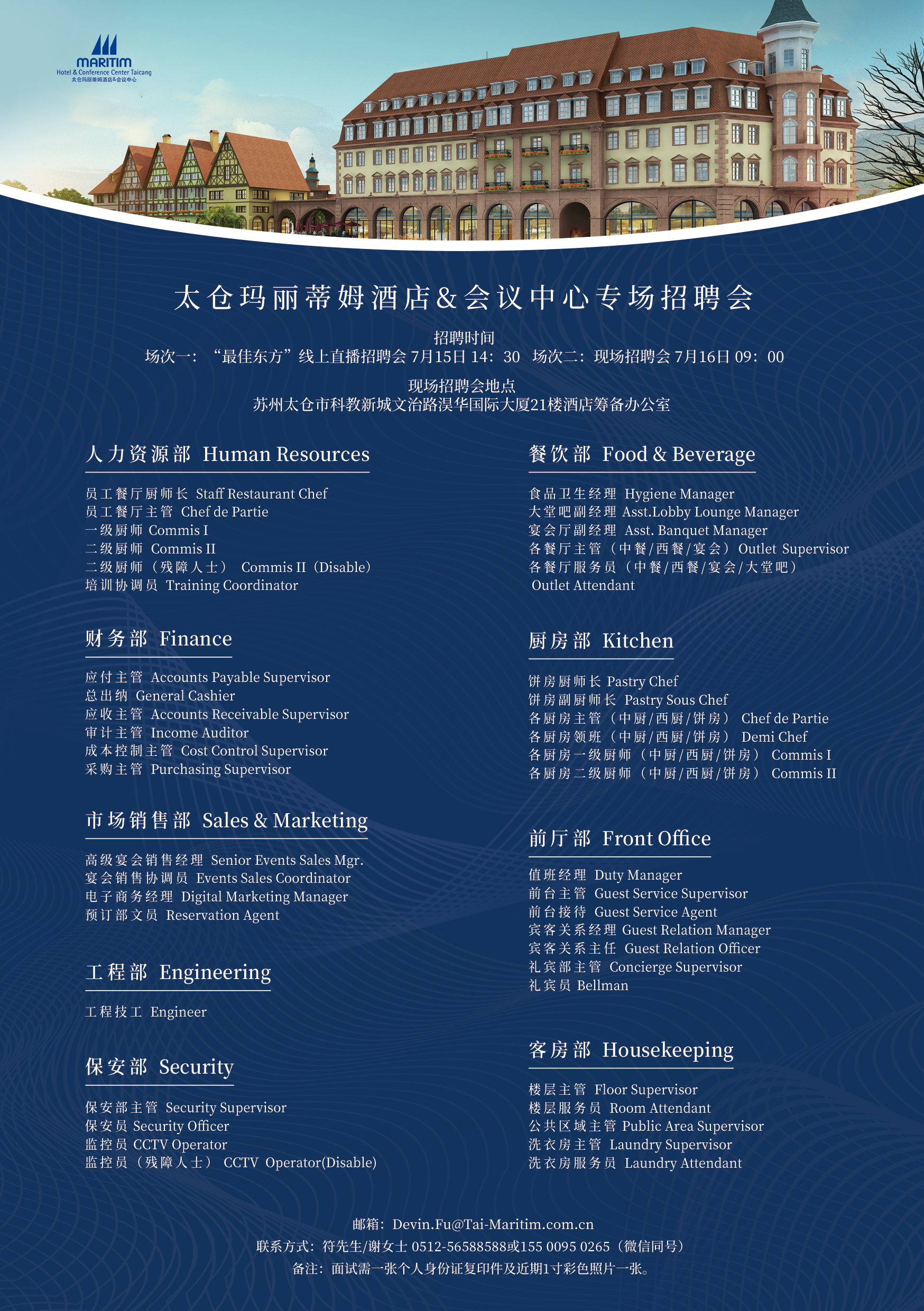 加入瑪麗蒂姆,關(guān)注7月太倉瑪麗蒂姆酒店&會(huì)議中心專場招聘會(huì)
